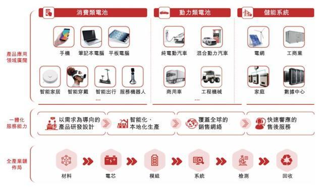 欣旺达以消费类电池业务起步,逐步拓展到动力类电池、储能系统及其他相关领域,形成了从电池研发、设计、制造、销售到检测以及回收的全面一体化业务布局。