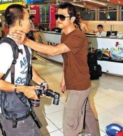 多次交涉无果的情况下,这个平时在公众面前温和示人的父亲在安慰好女儿后情绪彻底失控,他径直走向了那个男记者:扼住对方的喉咙,扇了对方的耳光,还砸了对方的相机。