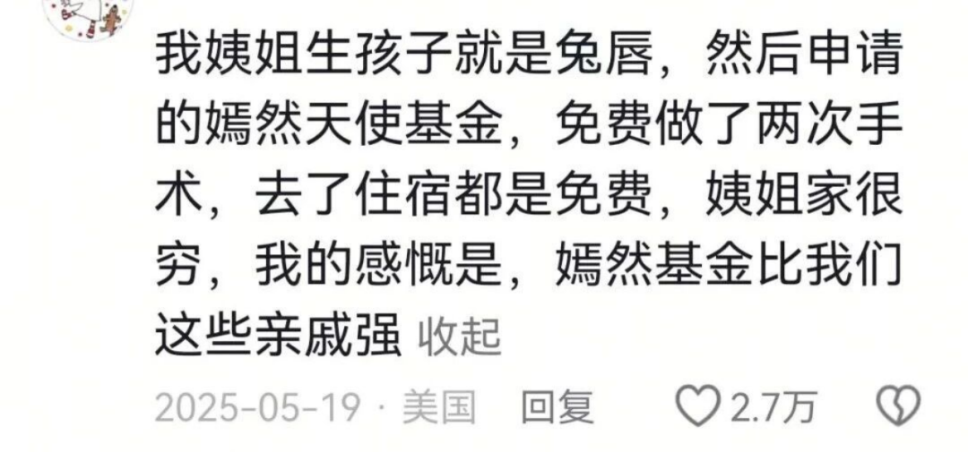 一位来自甘肃的母亲在接受“北京时间”的记者采访时,也证实了“嫣然”全程免费的大爱义举。