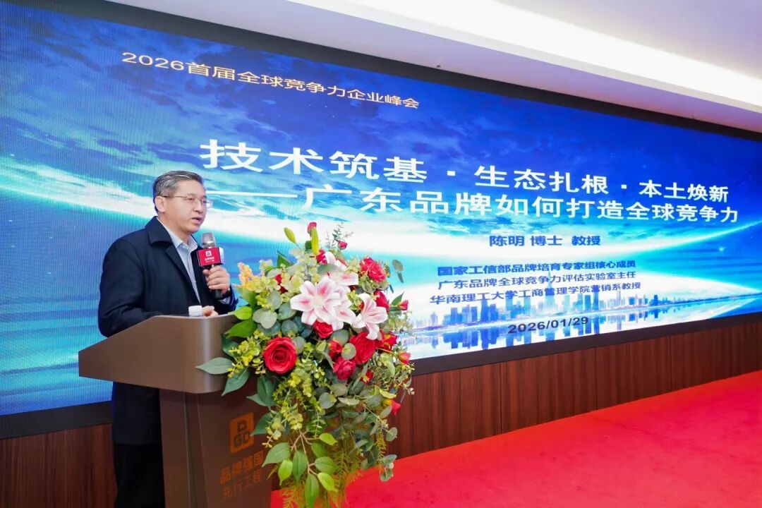 1月29日,由品牌强国先行工程组委会与广东省企业品牌建设促进会联合主办的2026首届全球竞争力企业峰会在广东品牌创新培育基地开幕。
