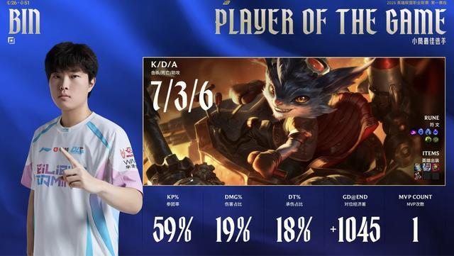 第一局MVP给到上单Bin的兰博。