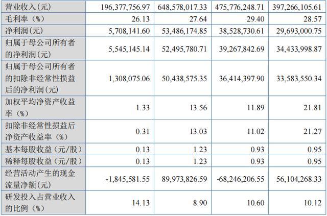 报告期内,公司营业收入分别为39,726.61万元、47,577.62万元、64,857.80万元和19,637.78万元,扣非归母净利润分别为3,358.36万元、3,641.44万元、5,043.86万元和130.81万元。