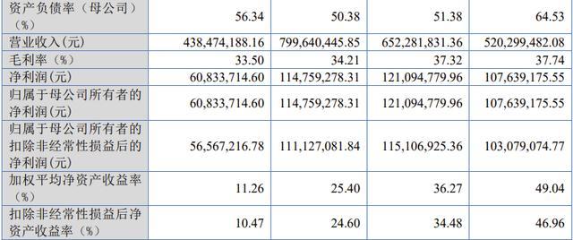 报告期内,公司营业收入分别为 52,029.95 万元、65,228.18 万元、79,964.04 万元和 43,847.42 万元,扣非归母净利润分别为 10,307.91 万元、11,510.69 万元、11,112.71 万元和 5,656.72 万元。