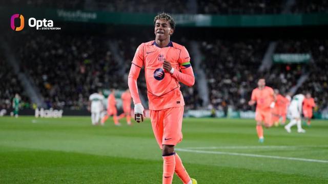 在与埃尔切的西甲第22轮比赛中打入一球后,18岁的亚马尔西甲生涯已打入23球,追平了姆巴佩保持的本世纪19岁前五大联赛进球最多纪录。