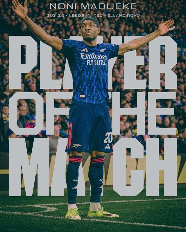 英超联赛第24轮,利兹联主场0-4阿森纳,贡献助攻并造成对方乌龙的马杜埃凯当选阿森纳本场最佳。