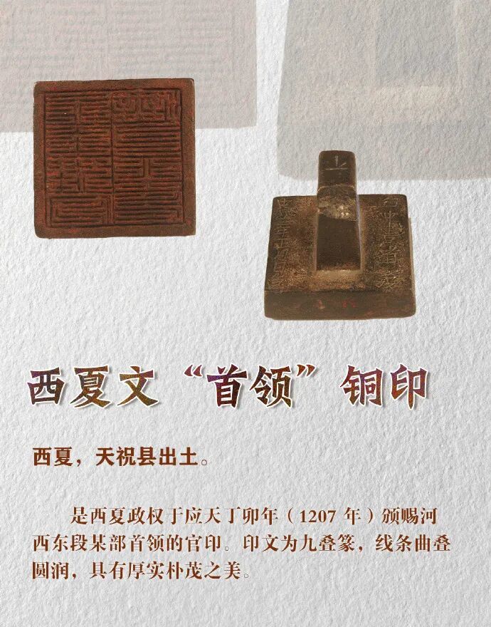 当我们在甘肃省博物馆驻足于这枚铜印前,抚摸着它历经八百年风雨的铜绿,仿佛能触摸到西夏王朝跳动的脉搏。这枚方寸之间的铜印,不仅是一件精美的艺术品,更是一部用金属书写的西夏史书——它以形制密码诠释制度投影,以文字密码展现民族智慧,以制度密码揭示职官体系,以文化密码诠释多元交融,以学术密码提供研究钥匙。在这枚铜印里,我们读到的不仅是西夏的“首领”二字,更是一个游牧政权在汉文化影响下的制度创新、文字创造与文化融合的辉煌历程。这,正是这枚铜印留给后世最珍贵的文化密码。