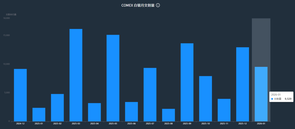 而且不少资金开始进行反向展期操作;在已知纽约-伦敦交易体系3月或无法提供足额白银的背景下,将交割期限调整至近月,也就是在1、2月进行交割。这些问题推动白银自2025年11月底开启暴涨行情,且涨势延续至2026年1月,甚至可能在2、3月持续。这也让原本属于传统交割小月的1月,白银交割量出现显著攀升,达到了4000万盎司。