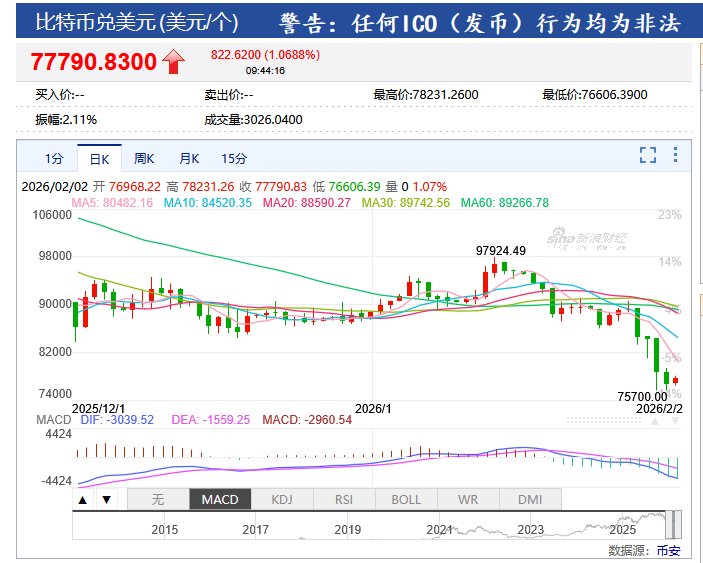 比特币已经再次跌破前低,回到了约7.8万美元/个的水平