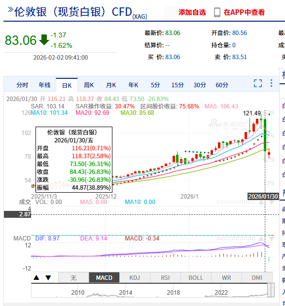 1月30日,伦敦白银出现历史级别的大跌