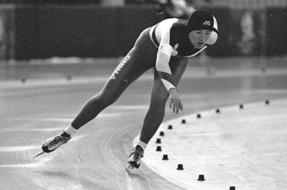 ↑1992年2月22日,李琰在阿尔贝维尔冬奥会短跑道速滑女子500米决赛中夺得银牌。