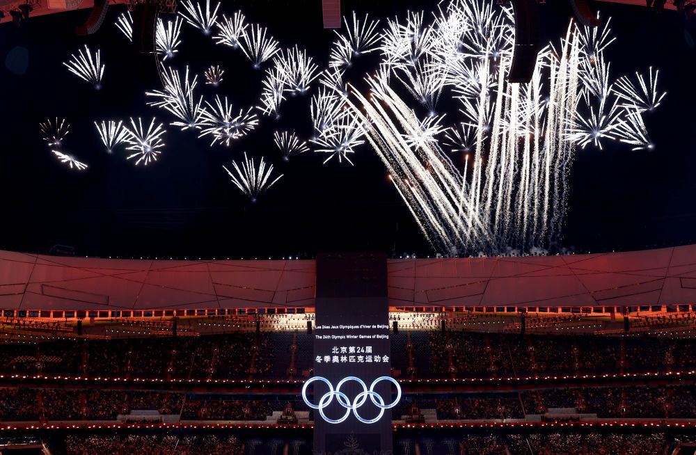 ↑2022年2月4日,这是北京冬奥会开幕式上的焰火表演。