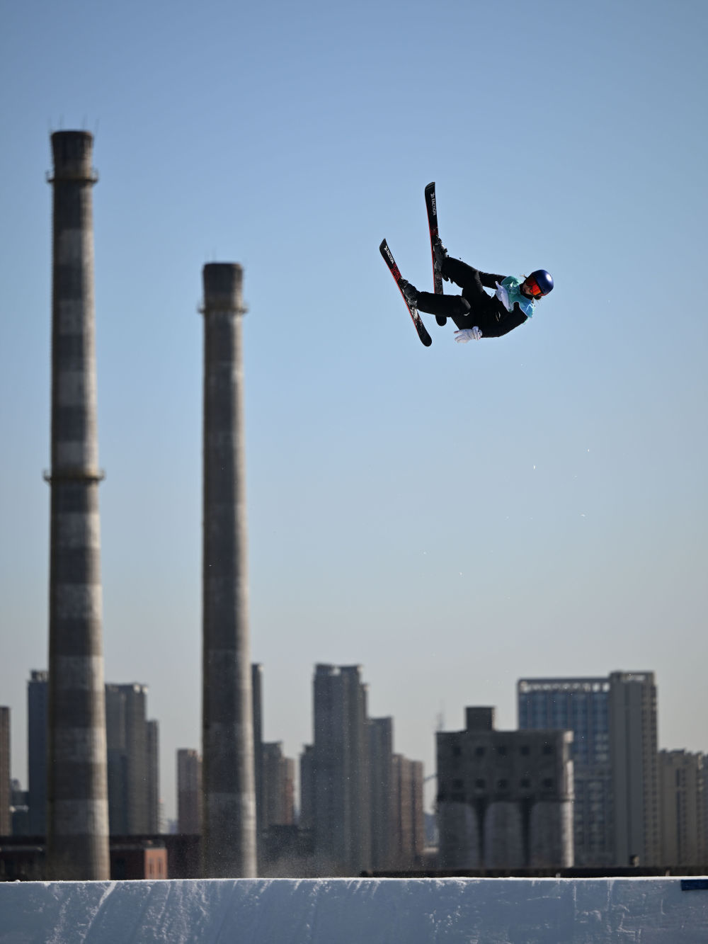 ↑2022年2月8日,谷爱凌在北京冬奥会自由式滑雪女子大跳台决赛中。