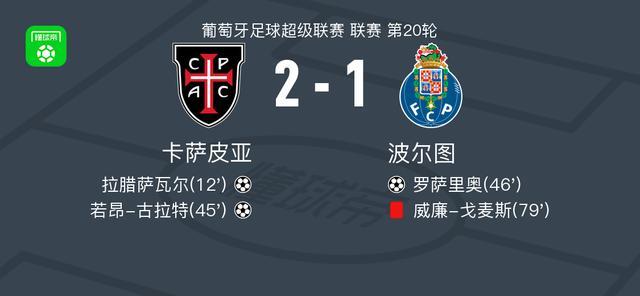 北京时间2月3日葡萄牙足球超级联赛 联赛 第20轮,卡萨皮亚主场对阵波尔图。卡萨皮亚拉腊萨瓦尔破门,若昂-古拉特破门。波尔图罗萨里奥破门。最终比分卡萨皮亚 2-1 波尔图。