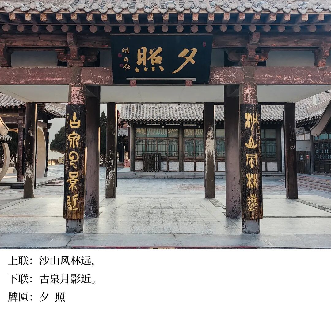 赏析:此联绘夕照之景,意境清寂。沙山之上,风林悠远,似藏天地的辽阔;古泉之畔,月影亲近,如伴游人的清寂。“远”与“近”相对,“风林”与“月影”相映,将沙泉夕照的静谧与清幽写得淋漓尽致,读之如临夕阳之下,顿生宁静之感,牌匾“夕照”精准点出此联的写景时节与意境核心。
