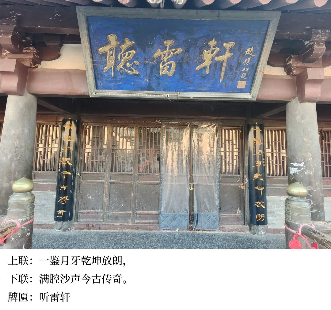 赏析:此联意境壮阔,气势恢宏。“一鉴月牙”将月牙泉比作一面明镜,映照乾坤,尽显开阔;“满腔沙声”写沙鸣之声,贯古通今,诉说传奇。“乾坤放朗”绘空间的辽阔,“今古传奇”写时间的绵长,将沙泉的壮阔与历史的厚重相融,读之如闻沙鸣,如见乾坤,牌匾“听雷轩”更添几分雄浑,与联中气势相得益彰。