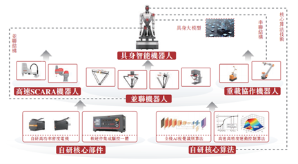工业机器人通常包含四大核心部件:控制器、伺服系统、减速机及本体技术。在并联机器人这个细分赛道,技术的突破口在于运动控制算法和机构设计。