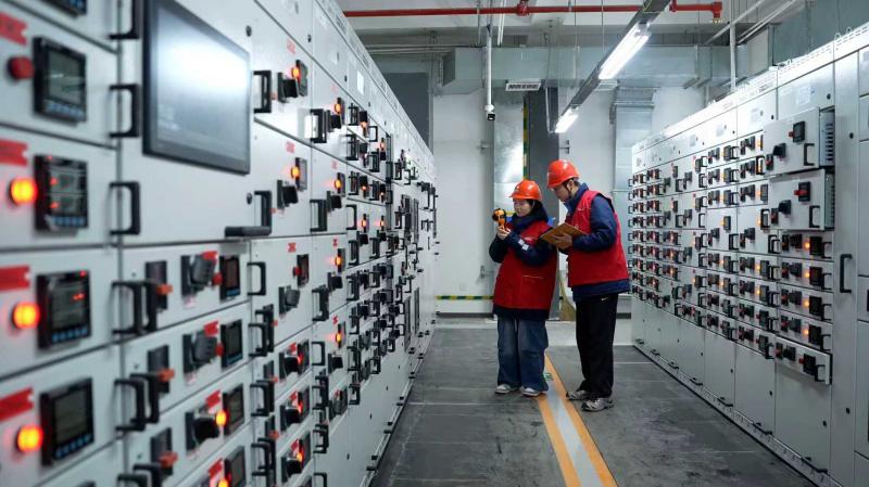 坐落于北京城市副中心综合交通枢纽内的北京通州站,迎来投运后的首个春运。2月2日一大早,国网北京通州供电公司保障人员韩靖晨、陈佳琪便来到站内配电室开展用电安全延伸服务。二人手持检测工具,逐一查看开关柜电压电流示数及开关分合位置,认真记录设备运行数据。与此同时,交通枢纽内的12座开闭站里,轨道机器人正按照预设路径开展全方位自动化检测,与人工常态化巡视构建起人机协同的智能运维体系。