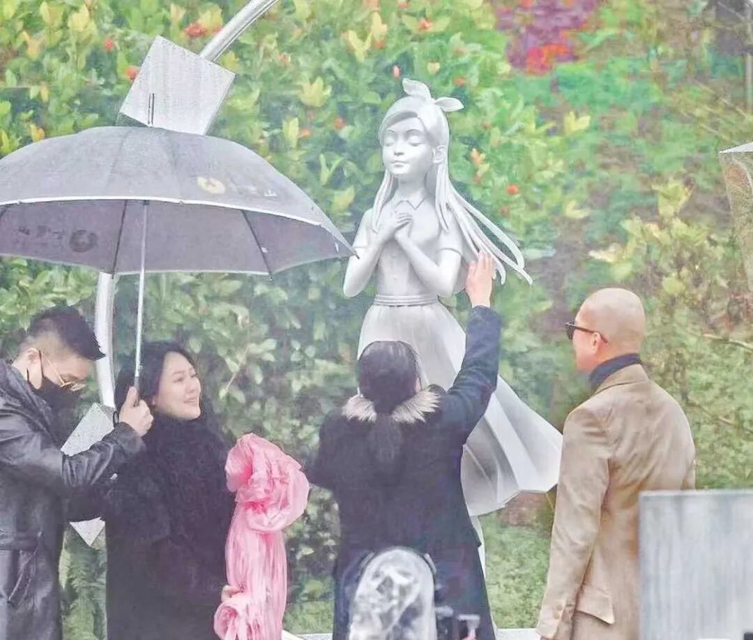 一片肃穆中,徐妈妈、小S和具俊晔共同揭开为纪念大S而设立的雕像幕布。