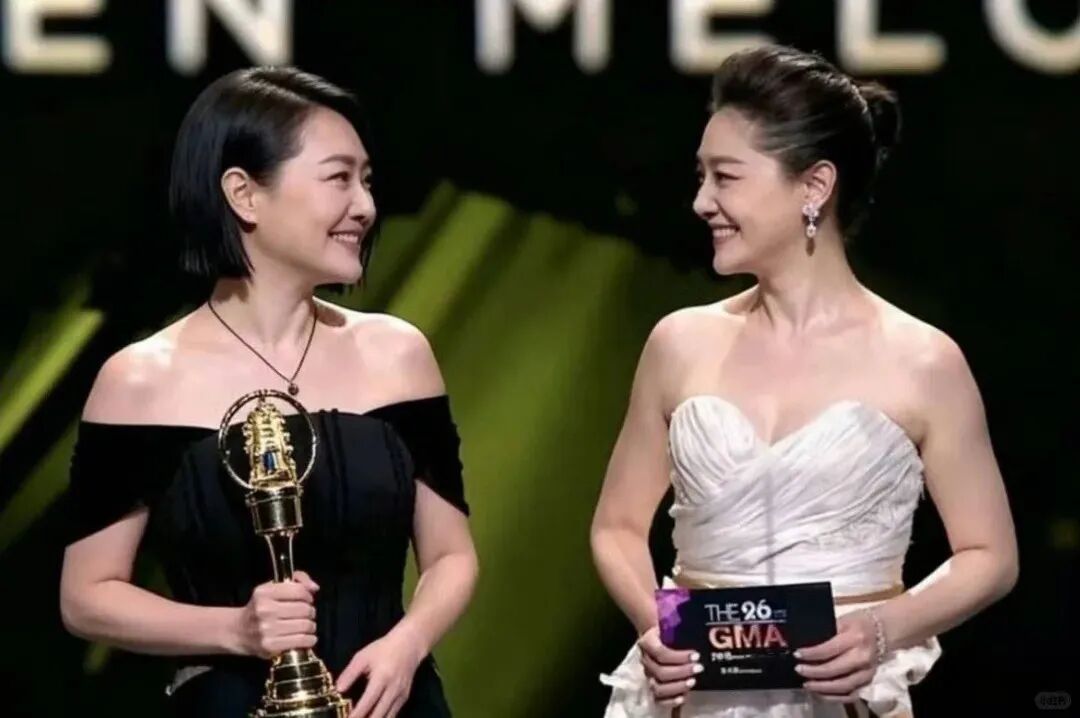 那晚,本该颁给最佳重唱组合的奖杯,在大S的带头下,被小S以玩笑的形式,先送到了范晓萱手里。