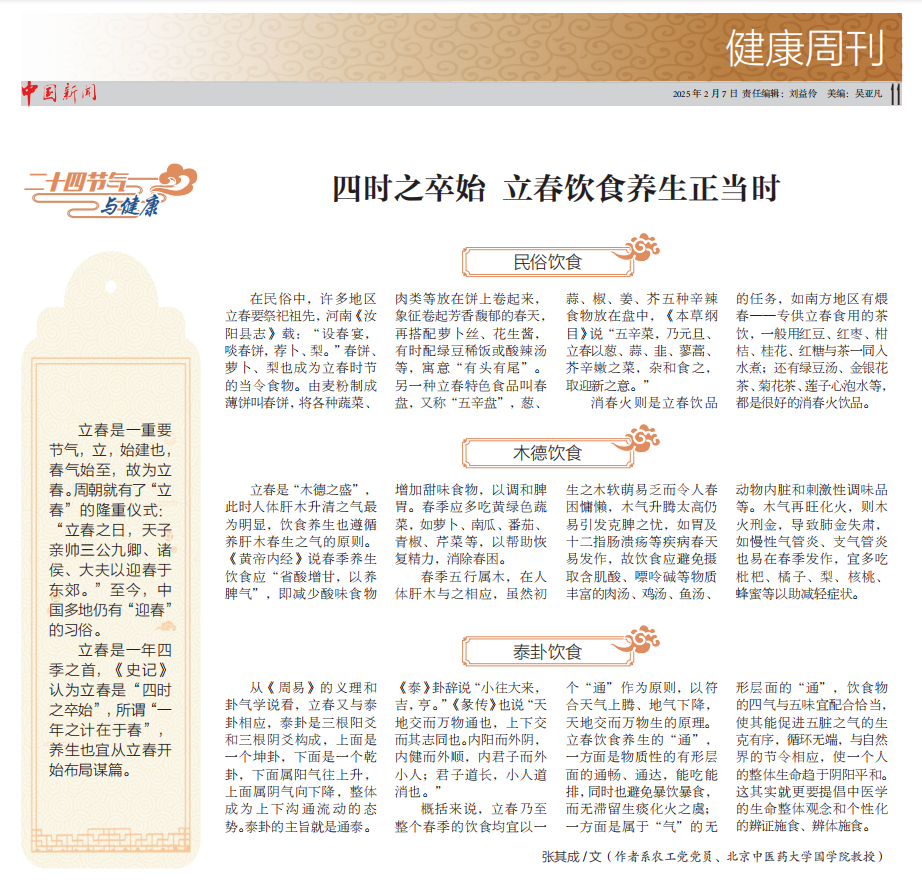 立春是一年四季之首,《史记》认为立春是“四时之卒始”,所谓“一年之计在于春”,养生也宜从立春开始布局谋篇。