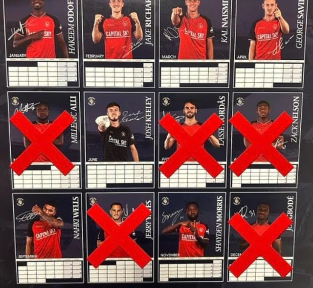 这名球迷在社交平台写道:“卢顿的2026年日历才用了31天,12名封面球员里已经有5个不在俱乐部了。”