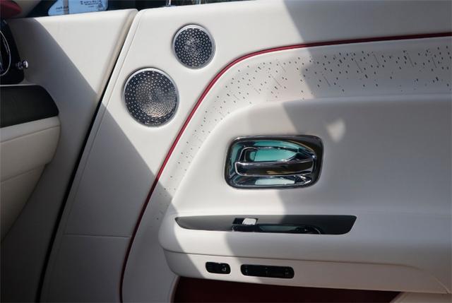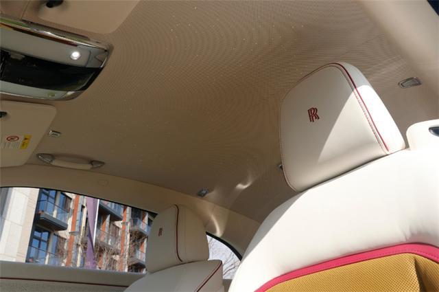 这台闪灵不仅有劳斯莱斯大名鼎鼎的星空车顶,在车门饰板位置也选装了星空设计,再加上副驾驶位置的发光面板,车内的梦幻氛围直接拉满。