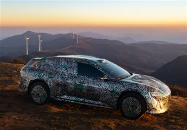 风挡上方配备激光雷达,车辆还搭载电子外后视镜与半隐藏式门把手;车身侧面腰线清晰,轮拱线条突出,车尾预计采用贯穿式尾灯,与车身侧面线条自然衔接。
