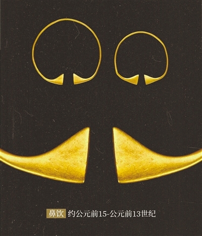 此次展览中的金器,其历史可以追溯至公元前15世纪,它们的故事从一对小小的鼻饮讲起。