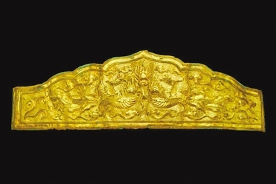 待金器的基本形状出来后,精细的加工便开始了。黄金的加工手段多种多样,其中历史最悠久、最为常见的技术是锤揲。它充分利用了黄金的延展性,通过锻打(锤)将黄金制成薄片(揲)。制作过程中需经反复加热,以保持金的延展性,故又称“热锻法”。锤揲法又经常配合模具使用“模冲法”,或辅以錾刻的“锤錾法”,以表现更细致精巧的纹饰。