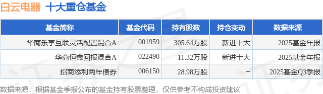 重仓白云电器的公募基金请见下表: