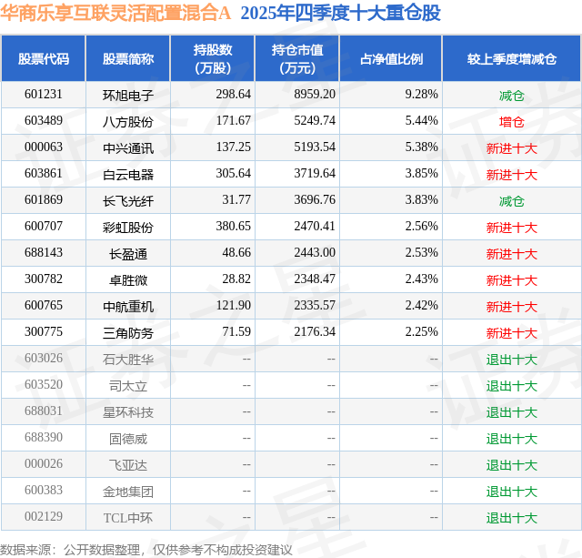 华商乐享互联灵活配置混合A的前十大重仓股如下: