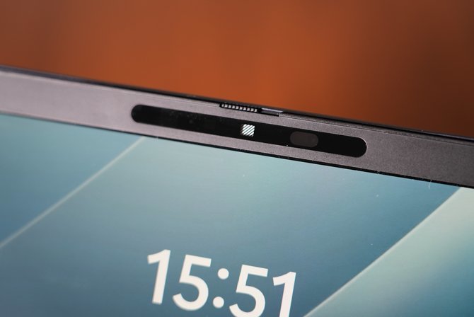 除了物理摄像头防窥拨片,AI增强的“智能旁观者检测”功能更是一大亮点。当摄像头检测到你身后或侧面有他人窥视时,系统会立即发出通知,并可自动模糊屏幕内容,有效防止敏感信息泄露,将隐私安全由被动防护转为主动的智能守护。