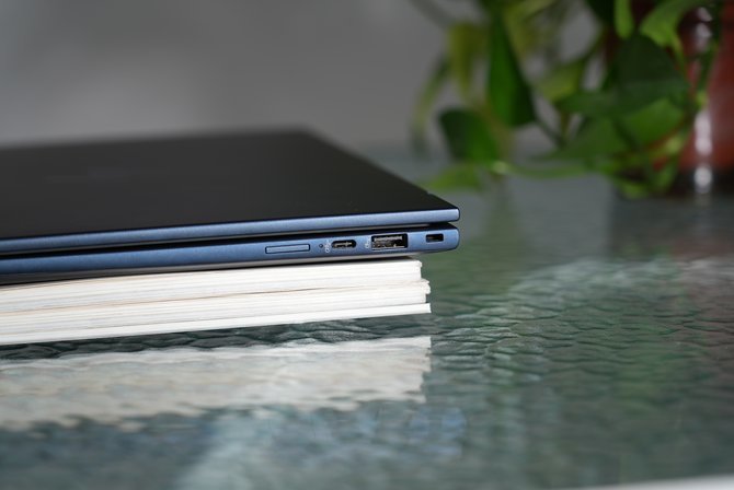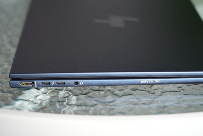 接口方面,HP EliteBook X G1i的配置堪称“满配”,远超同类型轻薄本。机身左侧依次为:双Thunderbolt 4接口,支持40Gbps数据传输、PD充电和DisplayPort2.1视频输出、1个标准HDMI 2.1接口、1个3.5mm耳机/麦克风组合插孔。