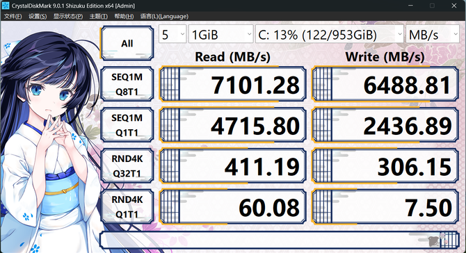 存储则配备了1TB PCIeGen4 x 4 NVMeSSD,实测顺序读取速度超过7100MB/s,写入速度超过6400MB/s,保障了系统和应用程序的飞速响应。