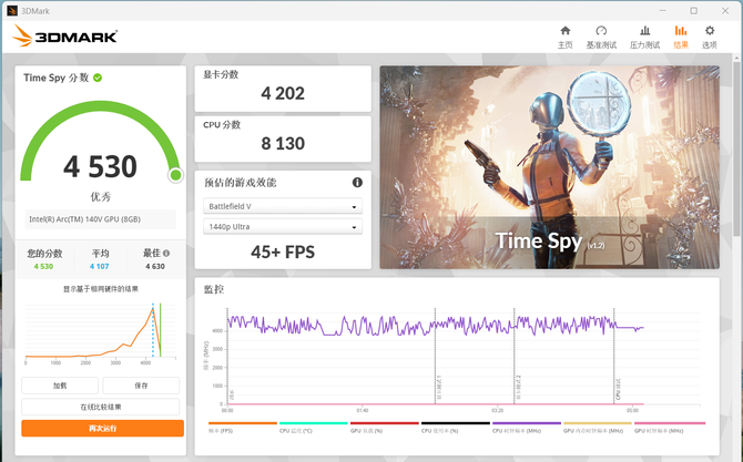 图形性能:3DMark Time Spy显卡得分4530,Fire Strike Ultra显卡得分2042,足以满足日常图形任务、高清视频会议以及轻度娱乐需求。