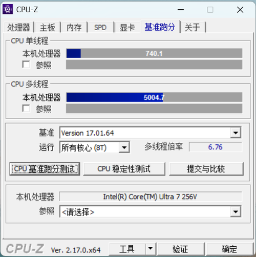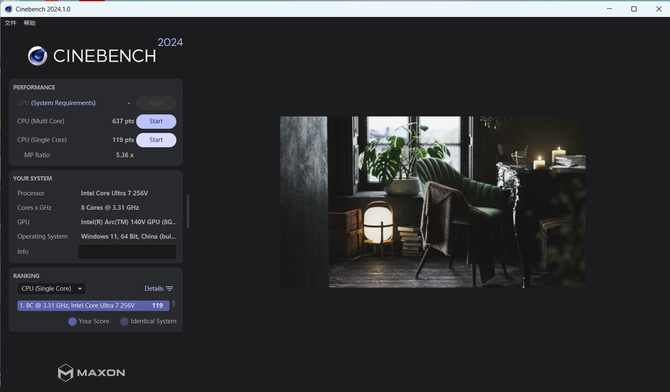 CPU性能:在CPU-Z中,单核得分740.1,多核得分5004.7。CINEBENCHR24测试中,单核得分119,多核得分637,表现稳健。