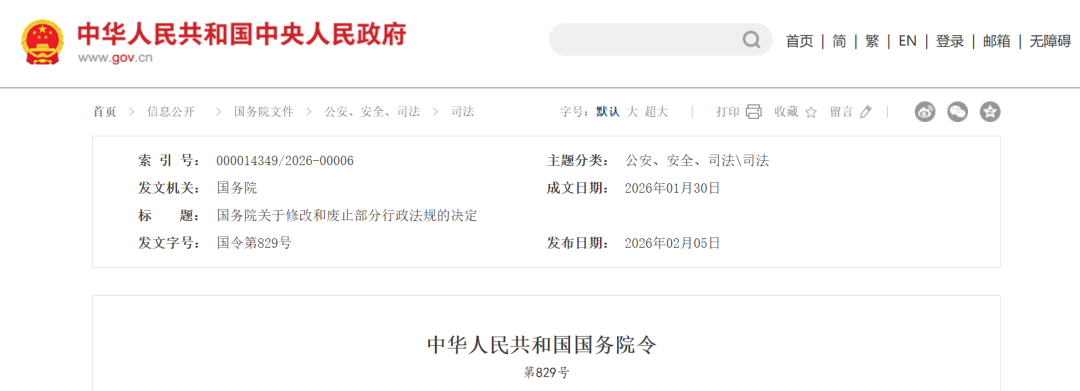 《国务院关于修改和废止部分行政法规的决定》已经2026年1月16日国务院第78次常务会议通过,现予公布,自2026年3月20日起施行。