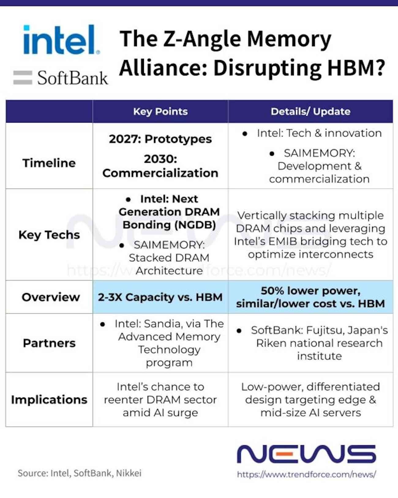 2026年2月2日,英特尔官宣与软银子公司SAIMEMORY合作,共同研发ZAM(Z-Angle Memory)新型内存技术。这既是英特尔适配AI与高性能计算需求的重要布局,更标志着这家巨头自1985年退出DRAM市场后,时隔数十年强势回归!