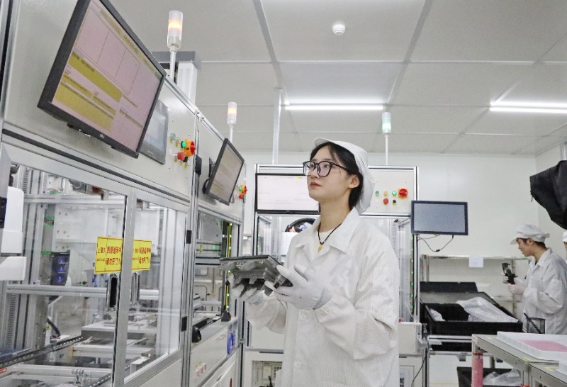 位于滁州南谯区的博晶科技(滁州)有限公司液晶显示模组生产线,员工正在检验检测产品。董超/摄