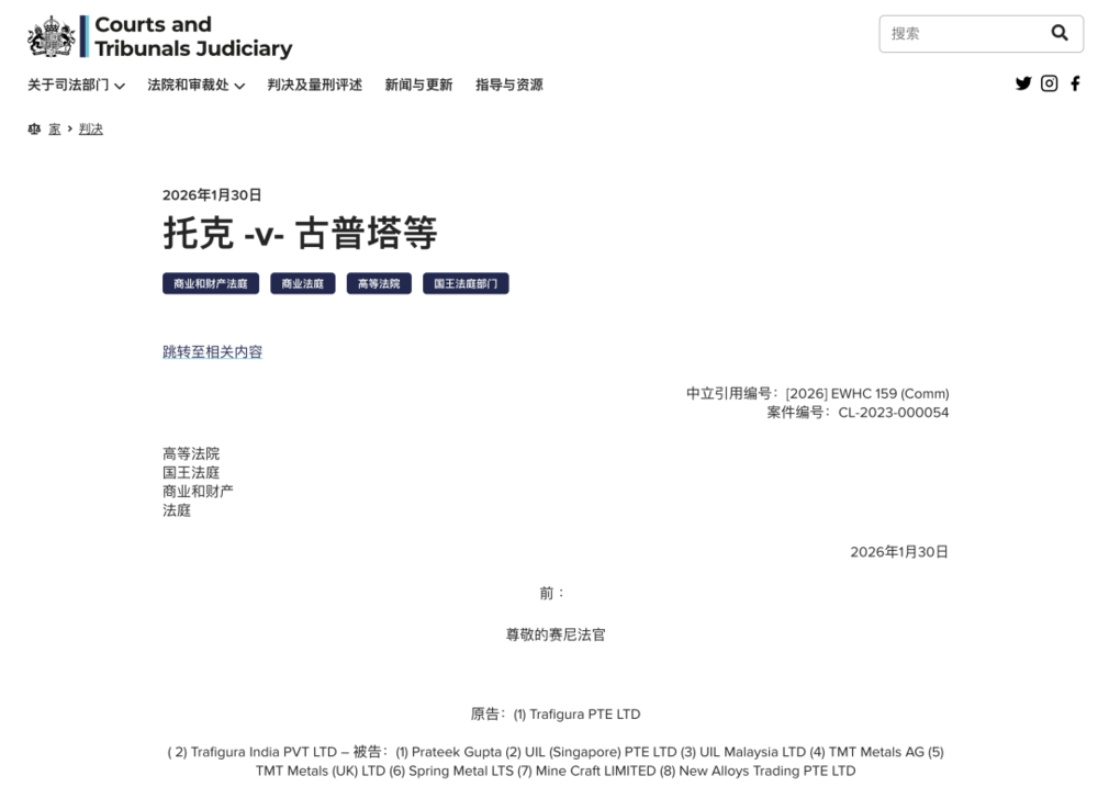 2026年1月30日,伦敦高等法院的判决书,给全球大宗贸易行业上了一课。