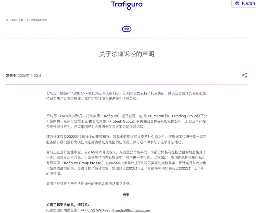2026年1月30日,伦敦高等法院作出了一个震惊业界的判决:全球主要大宗商品贸易商之一的托克集团(Trafigura),在一起镍贸易欺诈案中损失约5-6亿美元级别(据公开披露,涉及金额约600百万美元,不同口径略有差异)。