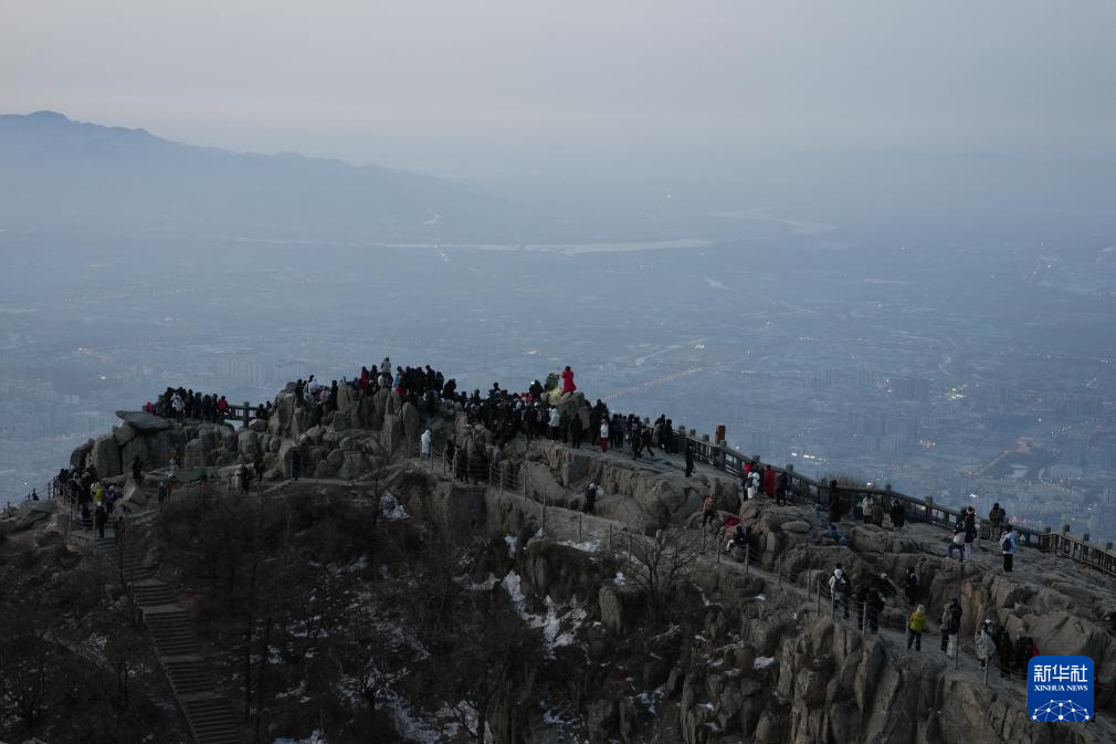 2月6日,游人在泰山瞻鲁台景区等候日出。