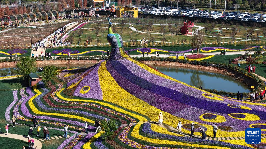 春节前,坐落于昆明市呈贡区斗南滇池湿地公园旁的七彩花海公园2月5日正式对外开放,公园围绕巨型孔雀花雕打造十大特色景观区域,成为滇池沿岸供市民游客赏花休闲的新去处。