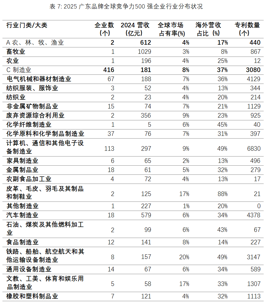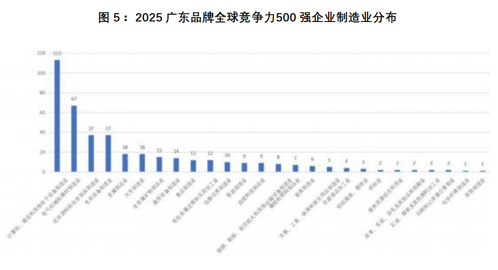 表 6: 2025广东品牌全球竞争力500强企业制造业分布状况
