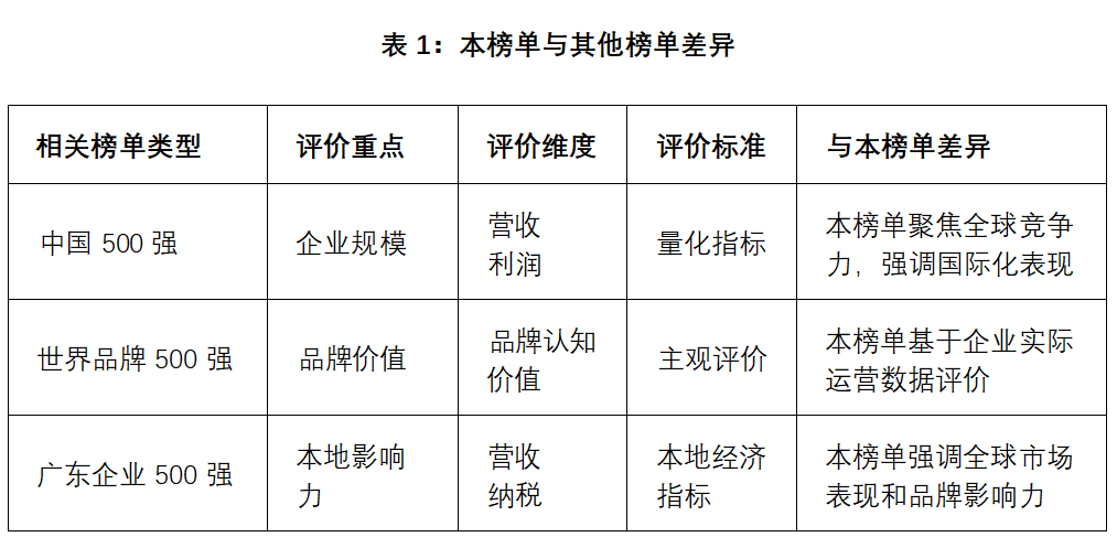 本榜单强调"品牌全球竞争力"而非单纯企业规模或国内影响力,与传统榜单相比,有以下突出特点: