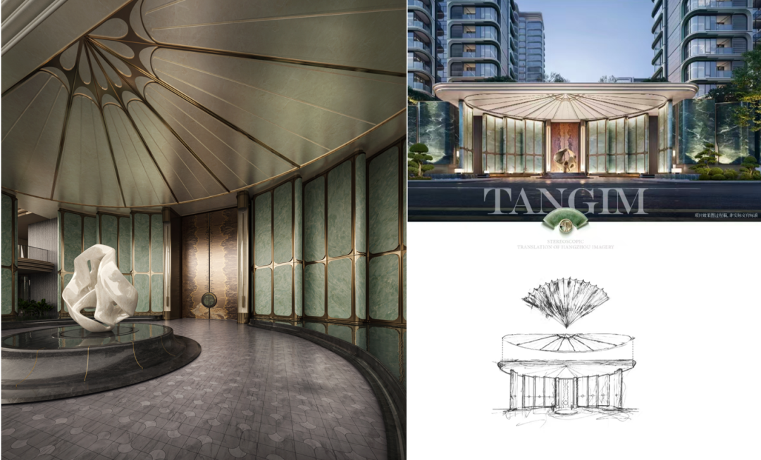 而稍微走近一点,一眼吸睛的扇形顶部专门参考了传统折扇的设计,彰显出杭州独特的宋韵江南气质