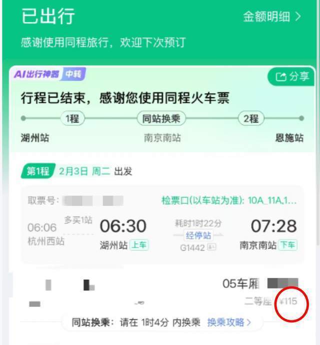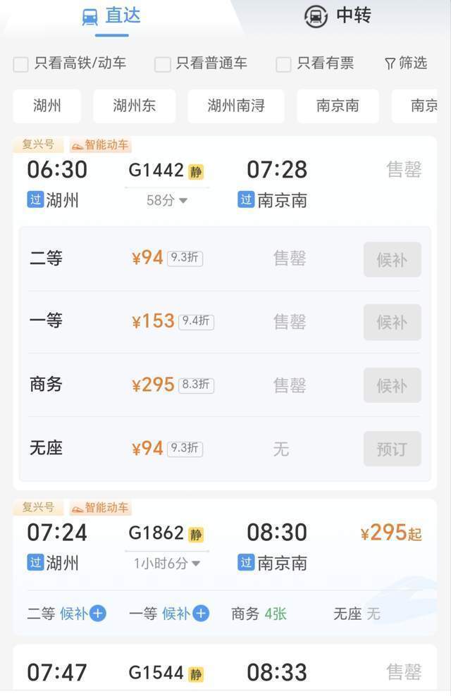 张女士的具体行程是湖州-南京南-恩施,连续数天抢票未果后,她开启了另一种购票方式。