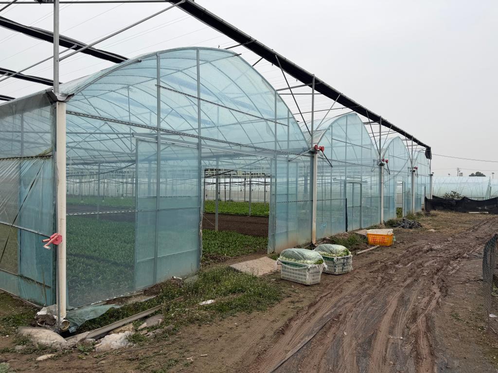 走进长江村,标准化钢结构温室大棚整齐排列,棚内菠菜、娃娃菜等长势正好,智能滴灌系统精准输送水肥,物联网传感器实时监测温湿度和光照。
