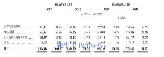 在收入结构上,2025年前九个月,公司的收入支柱是ODM(原始设计制造)业务,贡献收入4.76亿元,占总收入的61.6%。与上年同期的3.5亿元相比,该业务增长显著,成为支撑整体营收规模的关键。
