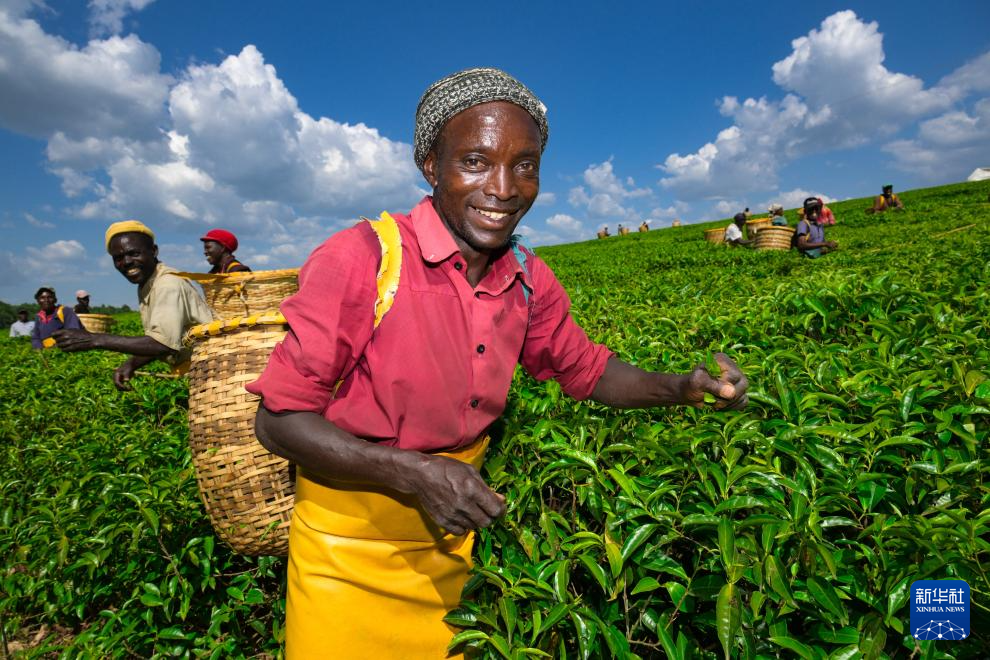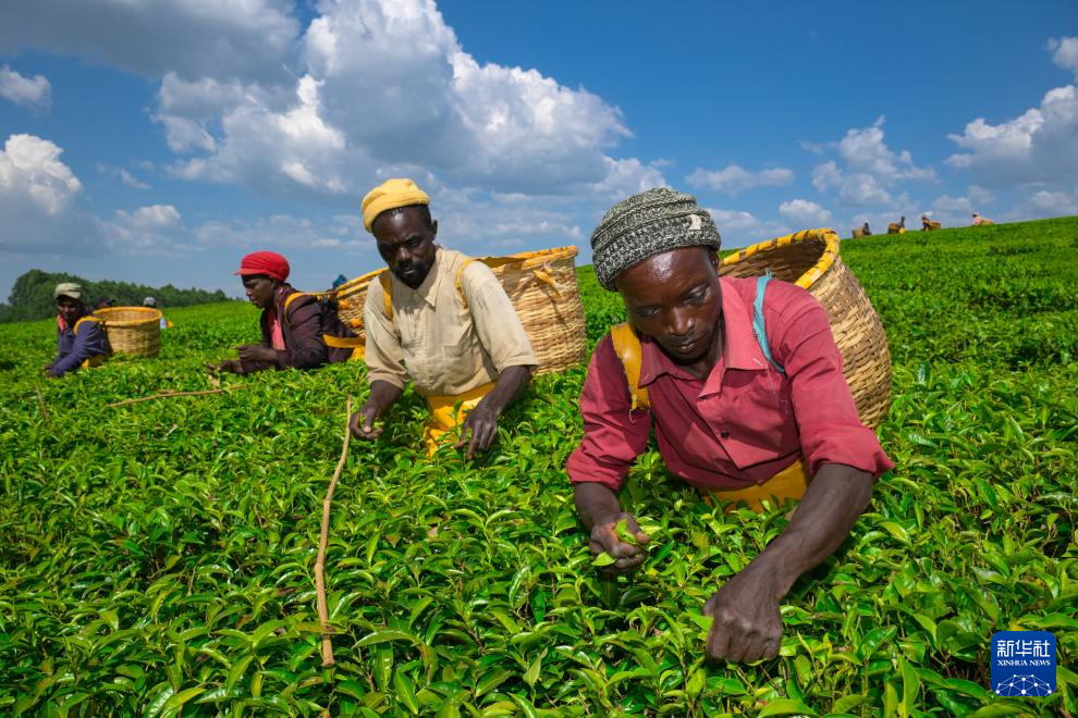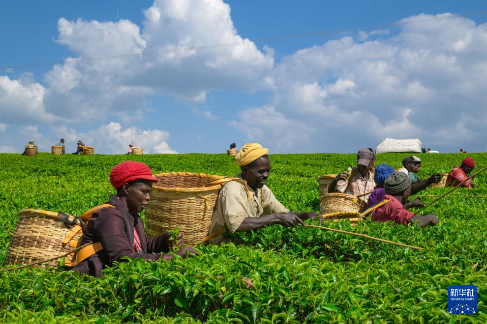 2月4日,在肯尼亚西部的博梅特郡,茶农在一处茶园采茶。